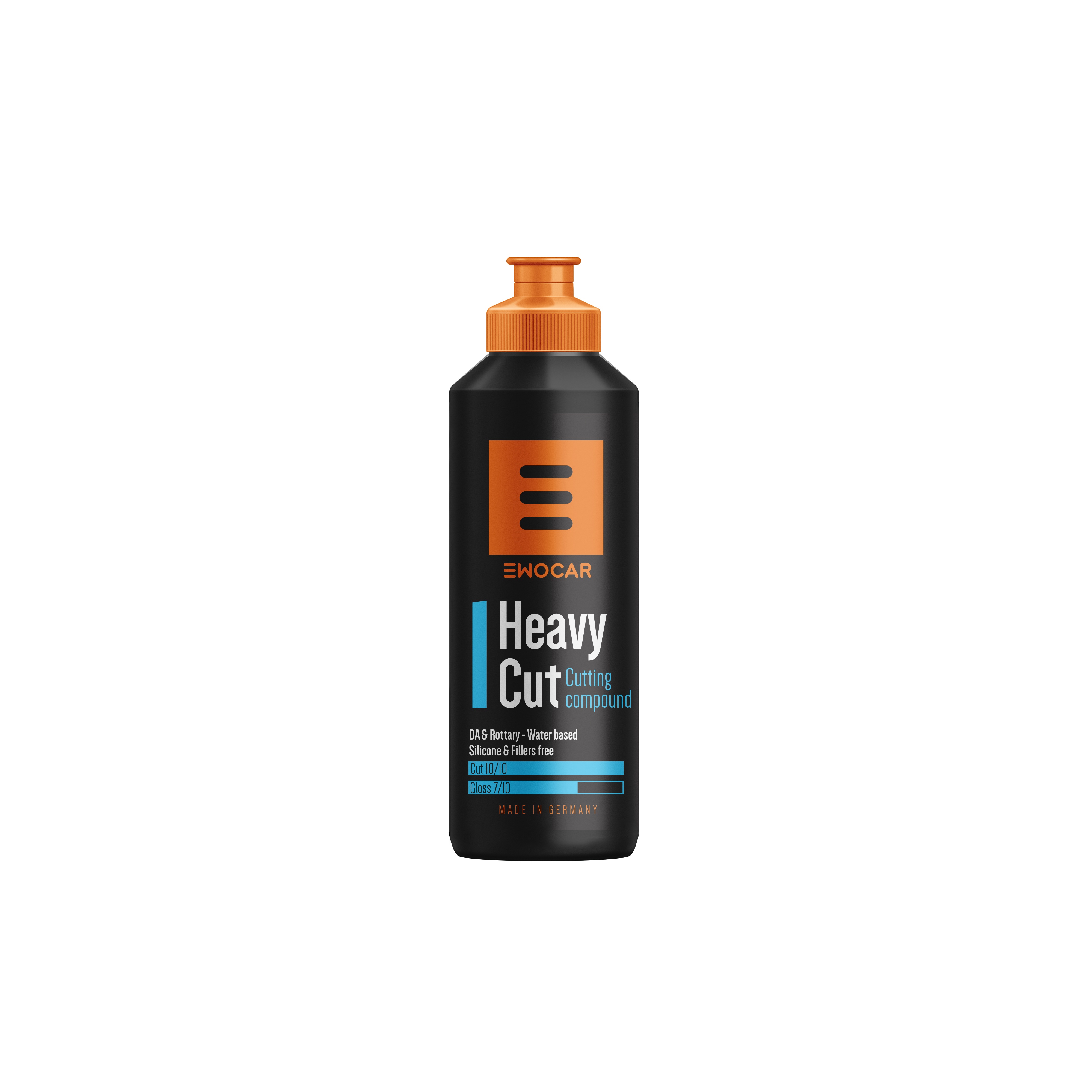 Ewocar Heavy Cut Polishing Compound is a water-based with low dust technology inside which allows for a longer buffing cycles without drying out on you prematurely like other compounds. After polishing cycle simply wipe off the polished area with a clean Ewocar Microfiber Cloth in a slow circular motions. On softer paint you might need to follow up with a lighter polish like Ewocar Finishing Compound to clear the remaining haze and provide deep rich gloss to your paintwork. Ewocar Heavy Cut Compound is silicone and fillers free making it a true heavy correction compound.